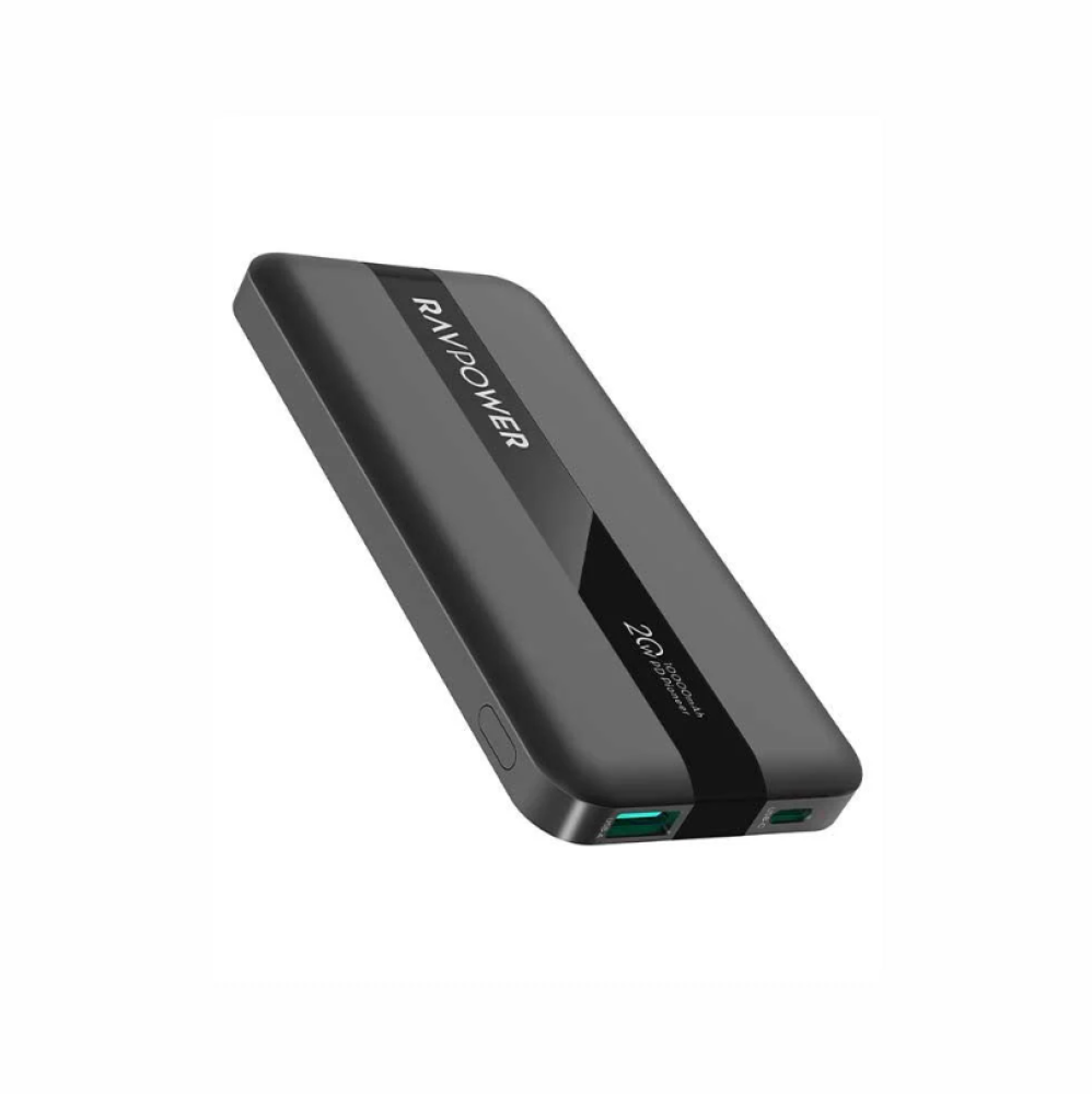 بطارية راف باور بقوة 10000 ملي امبير 20 وات بمنفذ تايب سي ومنفذ USB-A - اسود