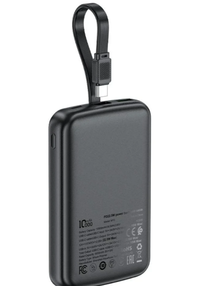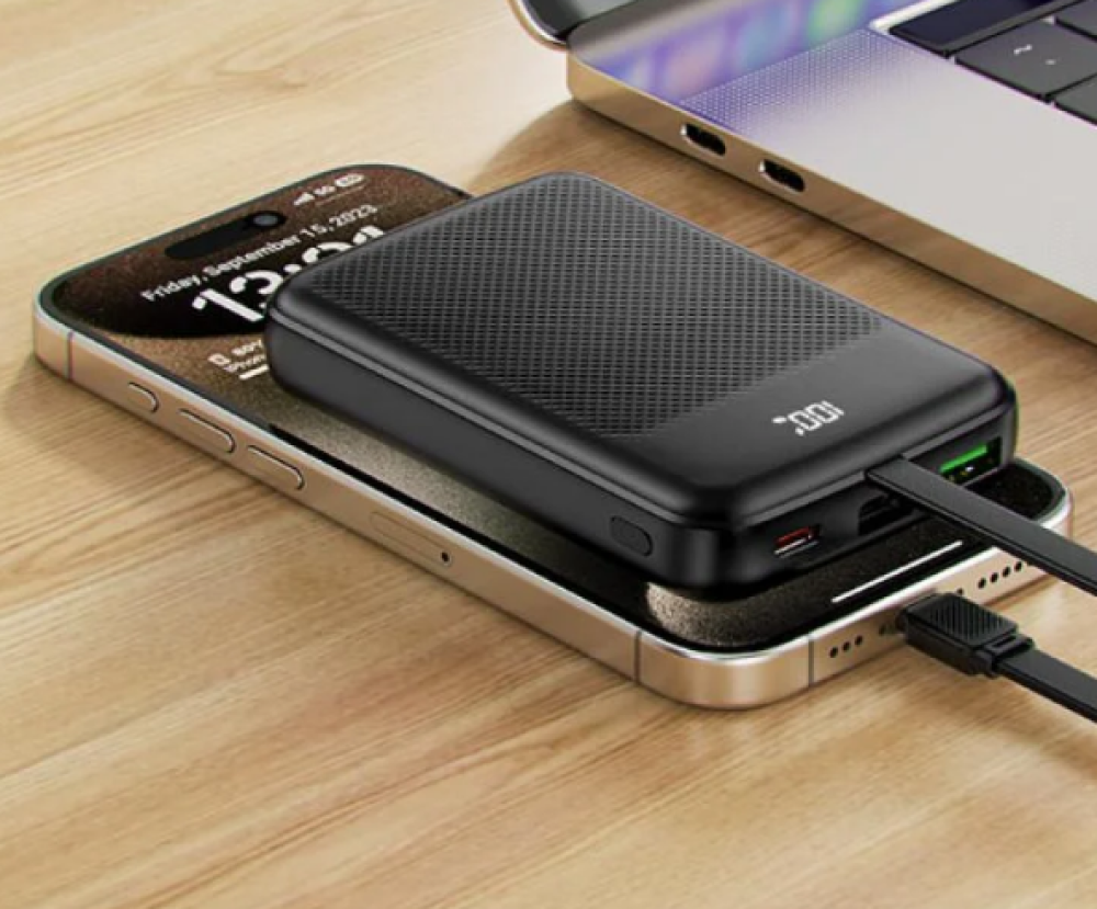 باور بانك 22.5W – سعة 10000 مللي أمبيرباور بانك مدمج وعالي الأداء مزود بكابل USB-C مدمج وشاشة LED ذكية، مثالي لشحن سريع وموثوق للأجهزة المحمولة.